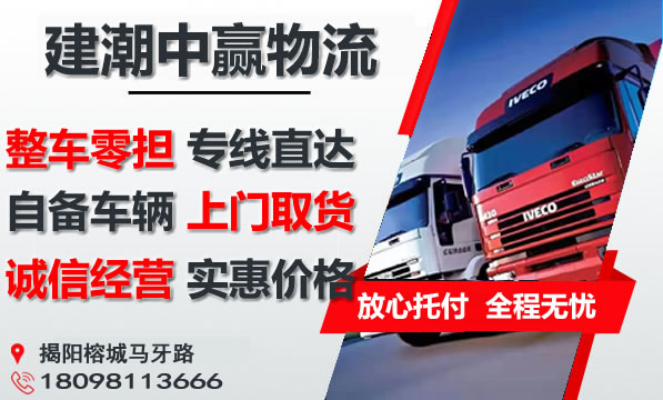 揭阳到青岛物流专线是建潮中赢物流主营重点物流线路之一,提供4.2-17.5米整车包车运输,零担专线,可上门取货,量大免费提送货;揭阳到青岛货运专线价格实惠,欢迎来电咨询。